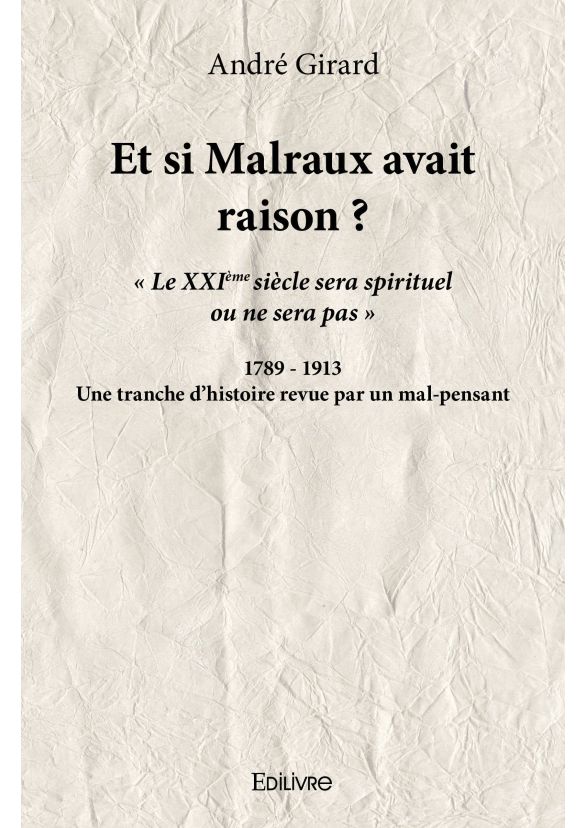 « Peut-il exister une communion sans transcendance ? » C'est, pour Malraux, « la question majeure de notre temps ». Établir un monde fraternel par les efforts conjugués du cœur et de la raison : ce projet d'alliance offert par le Christ à la liberté des hommes est-il réalisable si le ciel est vide ? L'expérience historique des siècles derniers, caractérisée par la divinisation de la raison humaine, incite à répondre par la négative. La prophétie de Péguy se réalise alors : « Pour la première fois dans l'histoire du monde, l'argent est seul devant Dieu ». L'appel à la spiritualité lance par Malraux à la fin de sa vie mérite d'être connu et écouté par la jeunesse. Elle hérite d'une planète rendue malade par une obéissance aveugle aux lois du marché, même au mépris des lois de la nature. Courageuse et nullement désespérée, la jeunesse saura relever ce défi par la recherche fraternelle du bien commun et la "mise au placard" de l'Argent roi du monde, même si c'est plus facile à dire qu'à faire.