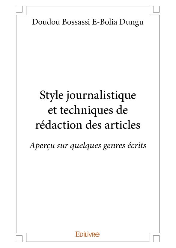 "Style journalistique et techniques de rédaction des articles" est conçu pour servir non seulement de guide aux étudiants en journalisme, mais aussi d’outil de travail pour les professionnels de la presse écrite. Ils y trouveront des principes qui guident l’écriture journalistique et des techniques utiles à la production des écrits journalistiques attrayants, faciles à lire et à comprendre. L’ouvrage traite de neuf genres journalistiques parmi les plus usités (brève, filet, synthèse, compte rendu, reportage, enquête, portrait, article historique et éditorial) ainsi que de l’attaque et de la chute, deux éléments essentiels de l’accroche journalistique. L’une des particularités de ce livre est de proposer au moins une illustration pour chacune des notions abordées ou presque.