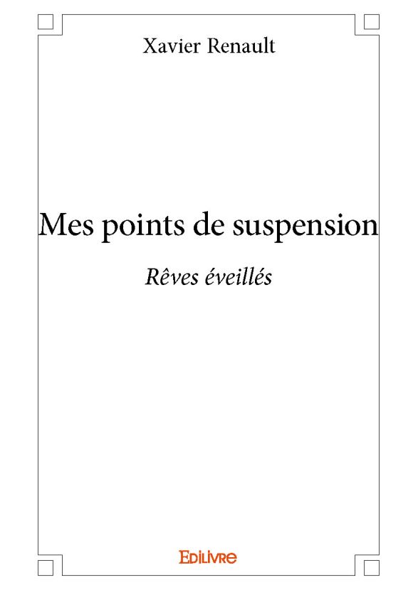Cet ouvrage est composé de poèmes écrits aussi bien en 2016 qu'en 2001, quand il s'agissait de l'Odyssée de l'Espace. L'Univers est vaste et ces textes sont le reflet d'une fraction de cette humanité, qui ravit ou qui déçoit.D'amours féminines ou masculines, il est plaisant de se retrouver inspiré par ce qu'on ressent, car dans ces cas-là rien ne peut nous faire tricher, on se livre à l'état brut.C'est l'histoire de ces fameux Points de suspension... Dave a chanté : « J'ai aimé des filles et aussi des gars, mais je pourrai dire, quand mon tour viendra, que tout le plaisir a été pour moi ». CQFD