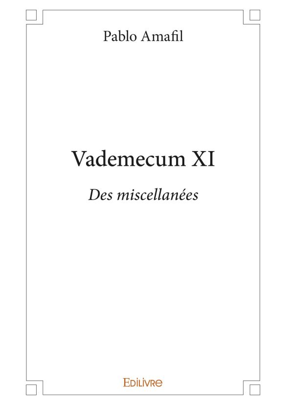 Vademecum XI sous-titré Des miscellanées, du latin miscellane signifiant « mélanges », réunit des thèmes très divers au point que les mots, les anecdotes et les remarques s’amoncellent pêle-mêle, offrant au lecteur une promenade ludique...
